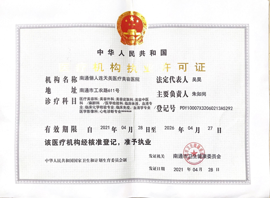 秉承“医诚、术精、责任、创新”的精神,南通俪人连天美医疗美容医院在发展的道路上,始终坚持将“医疗安全、医疗技术和医疗服务”作为核心价值理念。